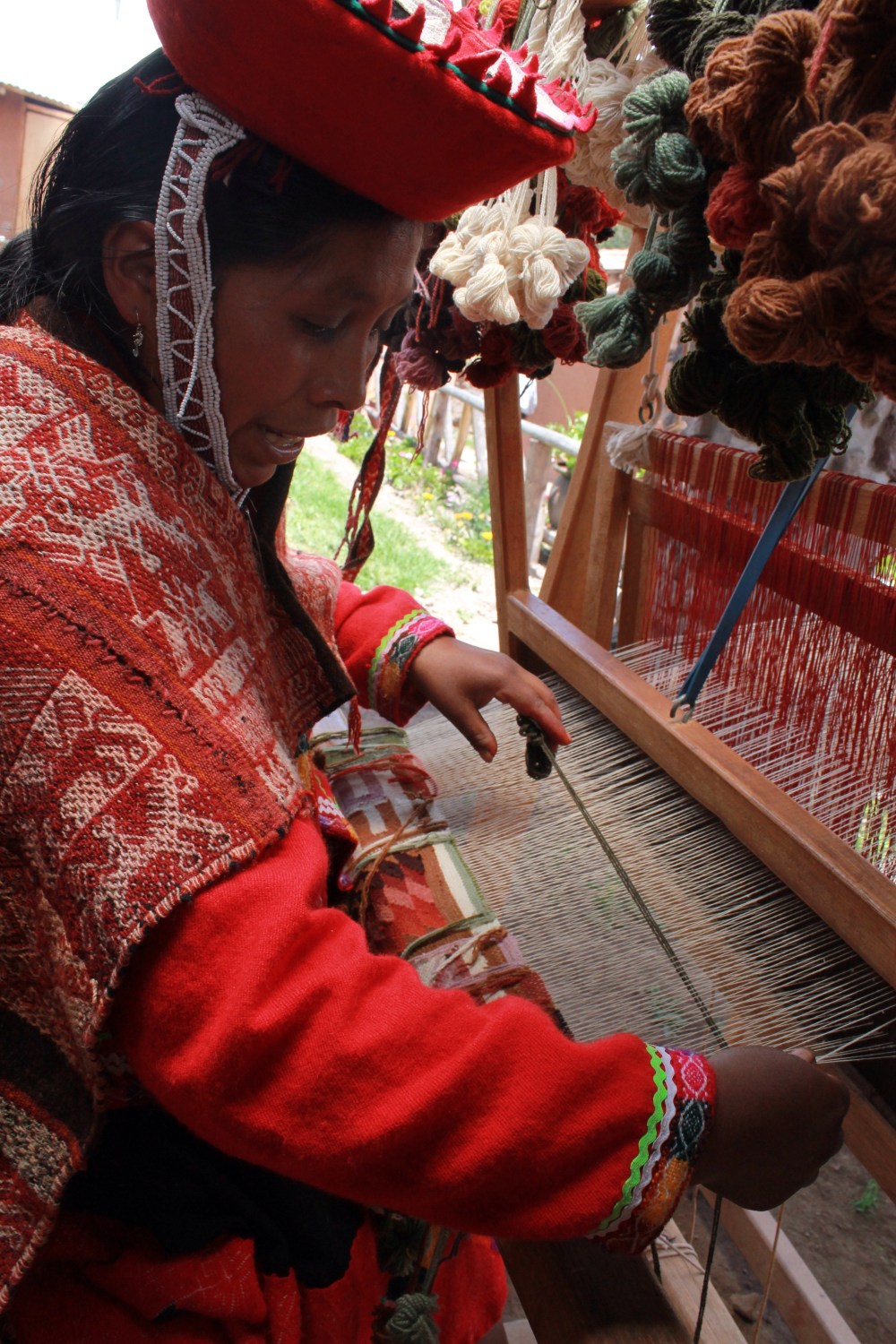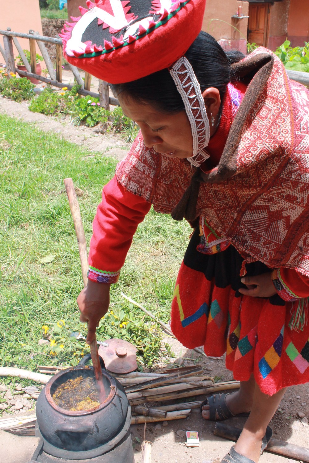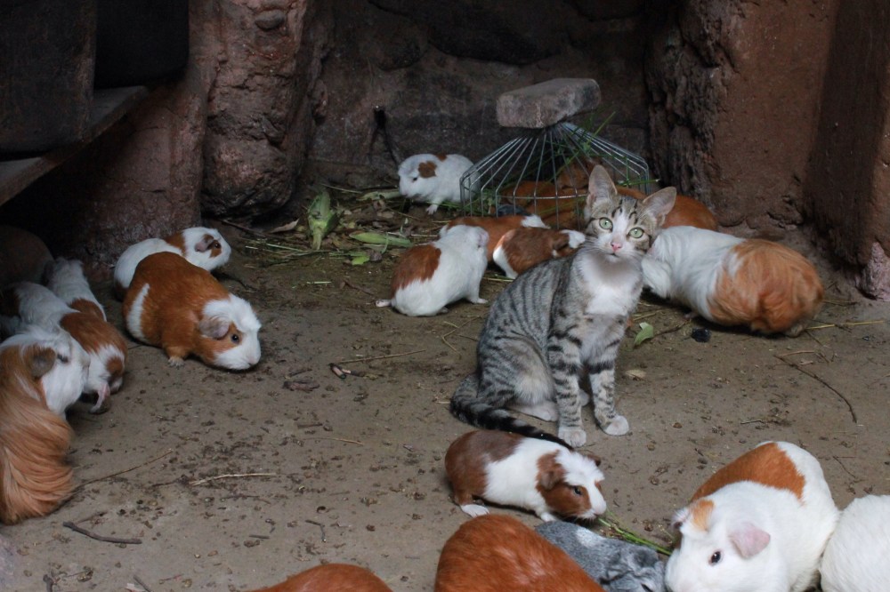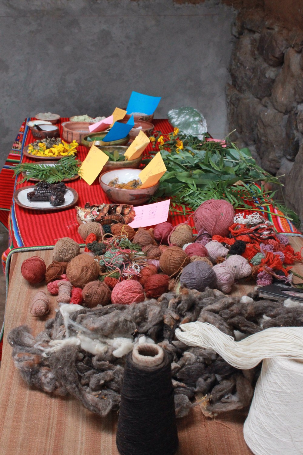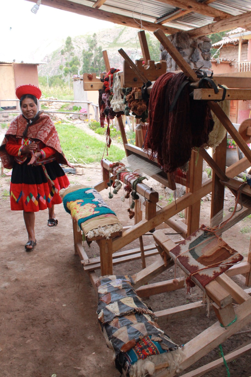 I learned so much in the span of three hours. I learned about the different common medicinal plants, how to use them, and what to use them for. Then I learned all about theprocess of naturally dying yarn. A woman showed me the plants, the corresponding colors, and got to actually watch the process. After showing me the dying process she showed me the weaving process even letting me sit on the loom and do some work! It was a really cool experience. I then went and learned about cuyes (quinea pigs) , and chicha before eating a local, natural meal.